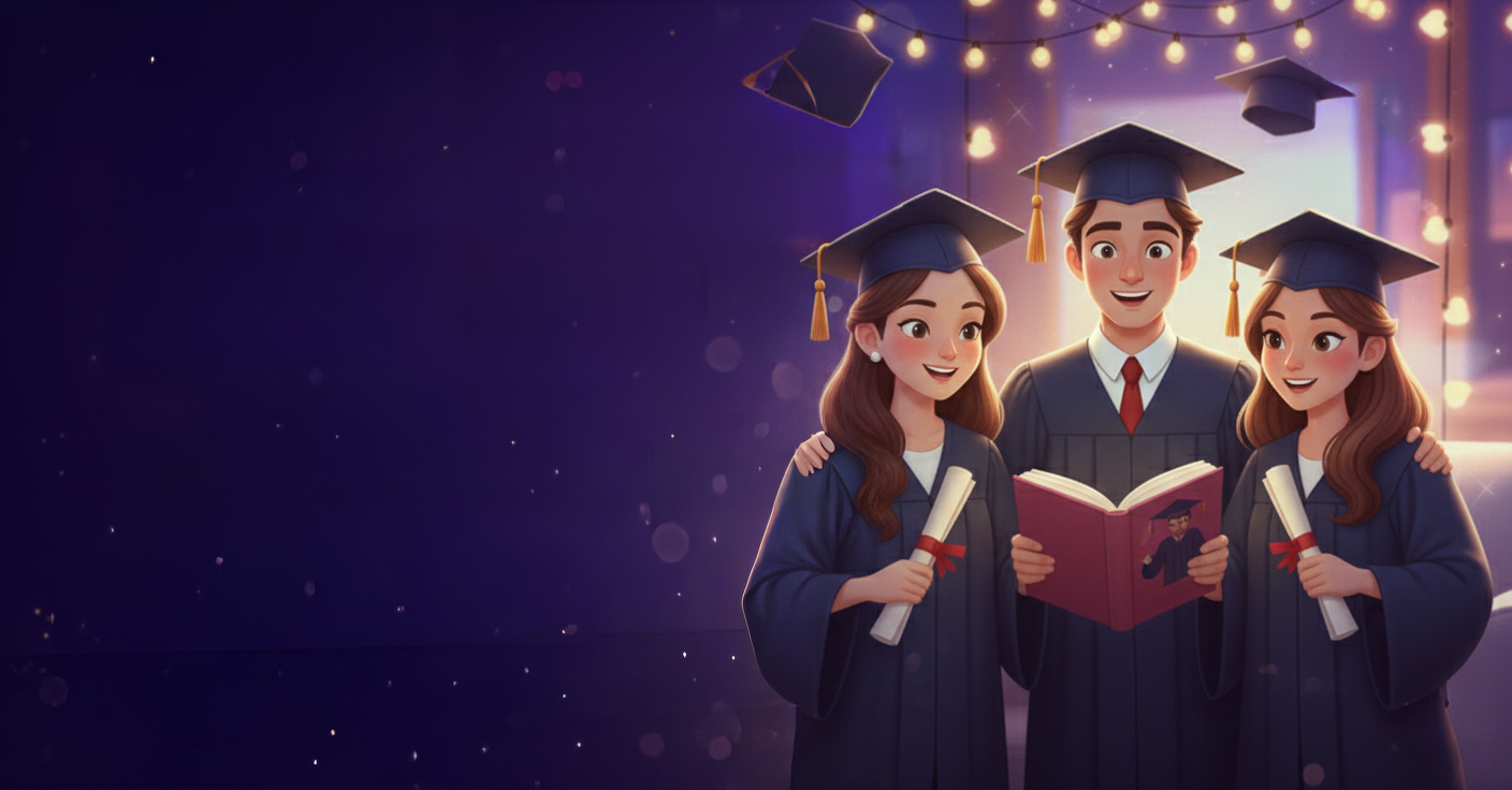 Celebrate their big achievement with a personalized graduation storybook. A unique gift that honors their journey and the adventures ahead.
